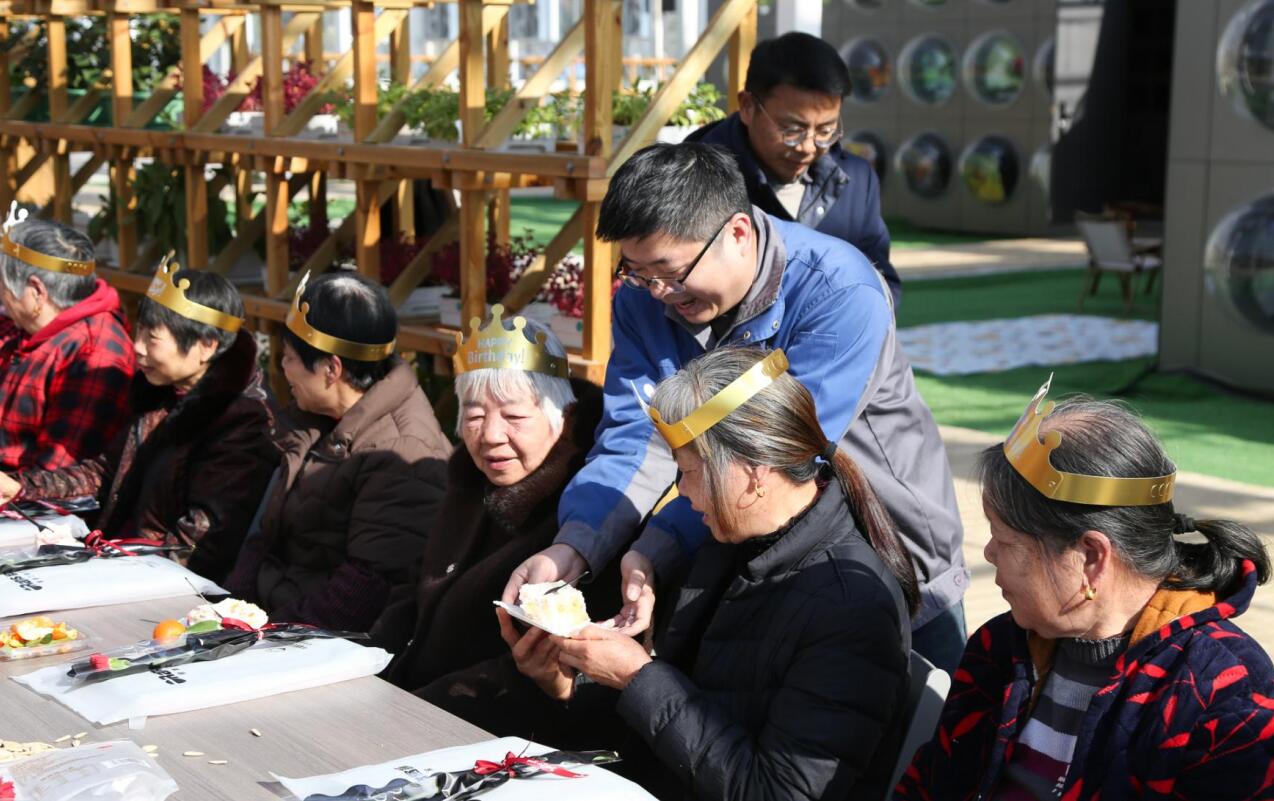 活動現場,生日蛋糕燭光搖曳,二十余位壽星老人頭戴生日帽,在歐路莎志愿者們的帶領下齊唱生日歌。分享蛋糕、互送祝福,現場儼然一個其樂融融的大家庭,傳遞著“新年添福壽,歲末暖情長”的節日溫情。