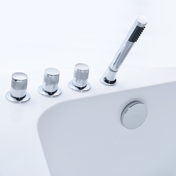防止水流聚集在缸沿,特采用傾斜式花灑插座,龍頭關閉水流后自動滴落在缸內;瀑布式進水搭配缸體時尚美觀。